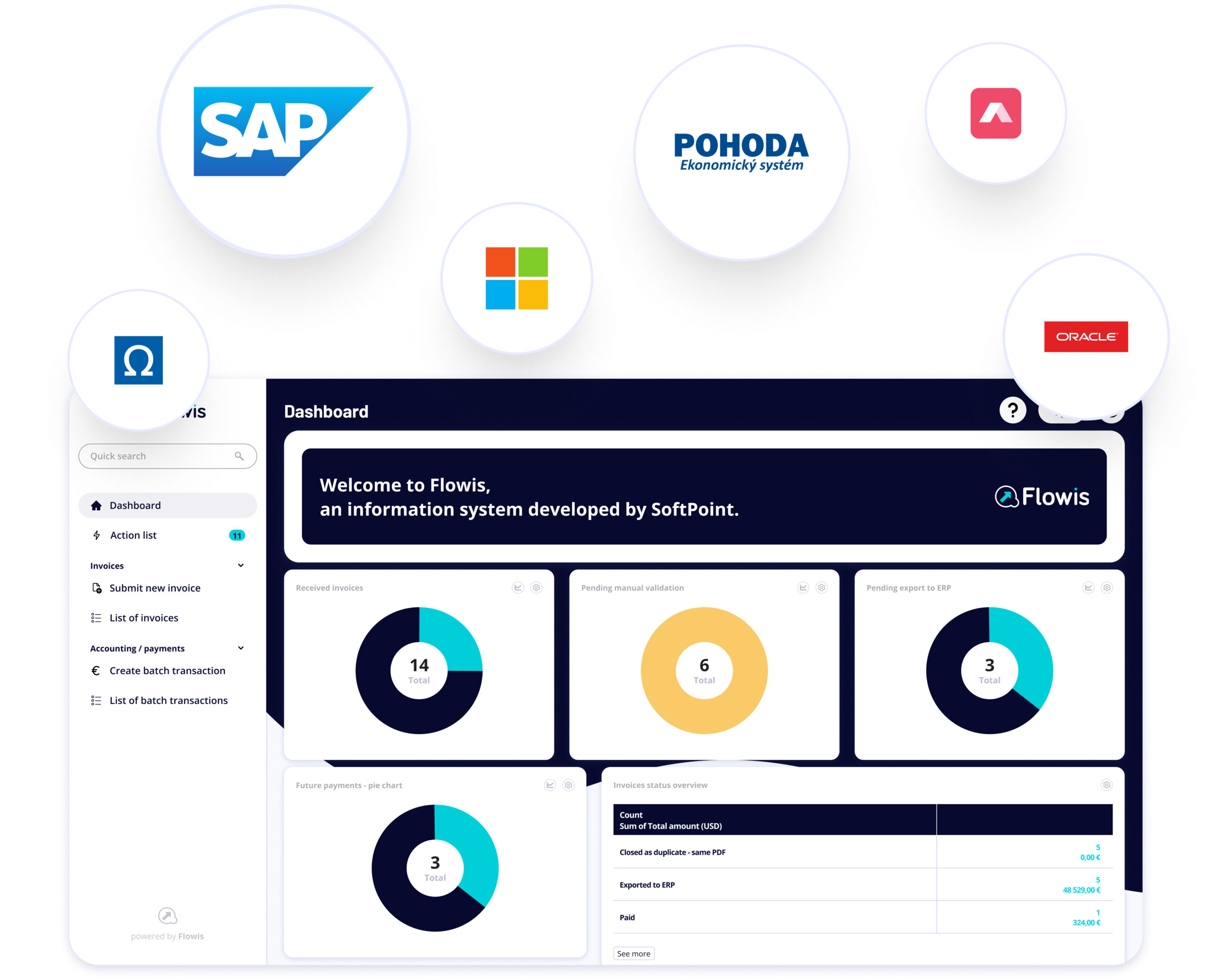 Flowis positions ERP integration as a core part of process automation, with pre-built, file-based, and process-level integration strategies depending on the business setup. That matters because touchless processing is only sustainable when workflow automation and accounting data move together.